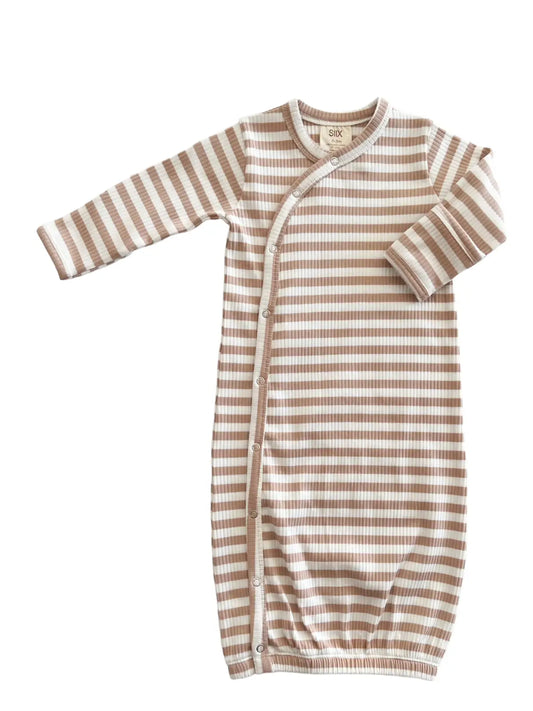 Siix Collection - Organic Ribbed Sleeping Gown (Tan Stripe)