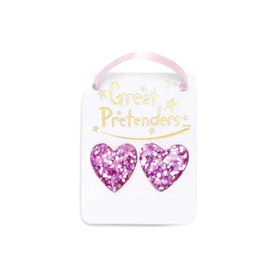 This glitter heart earring set by Great Pretenders comes with one pair of earrings, and it is a perfect start (or addition) to any earring collection.