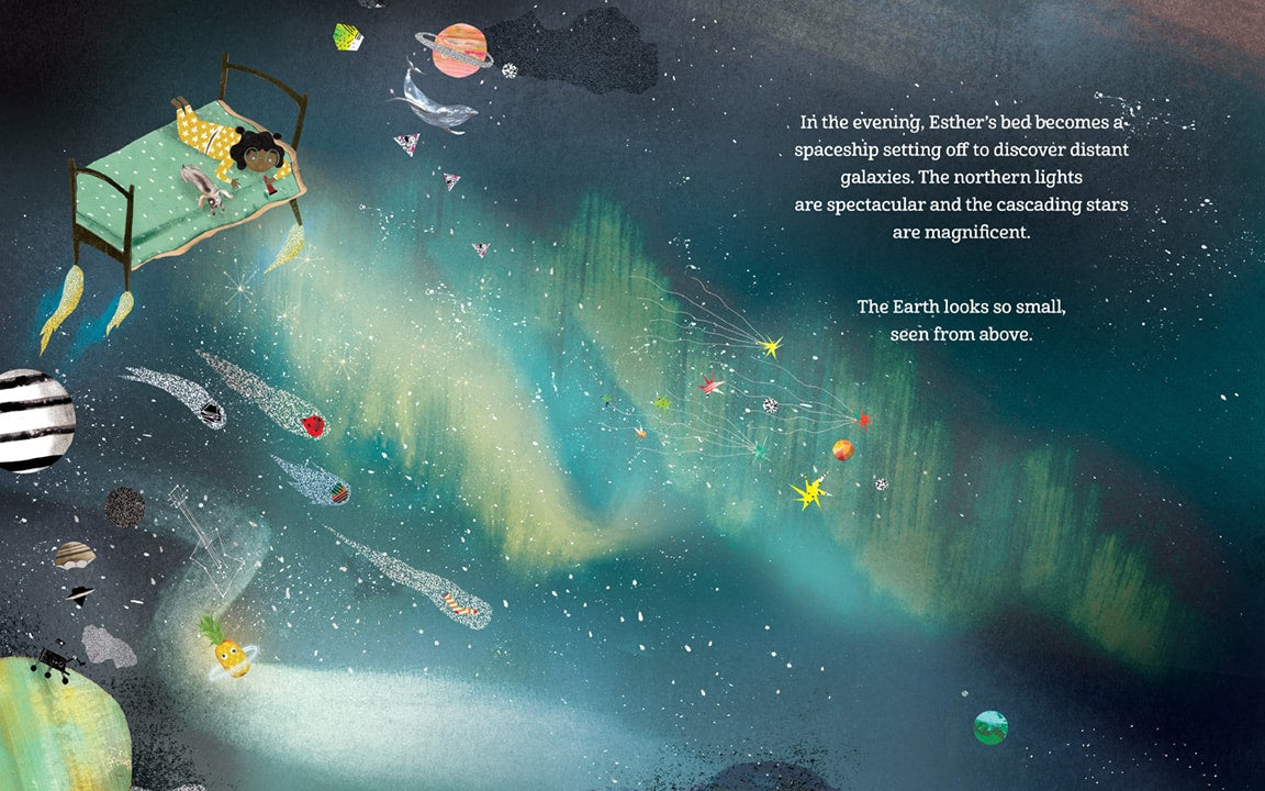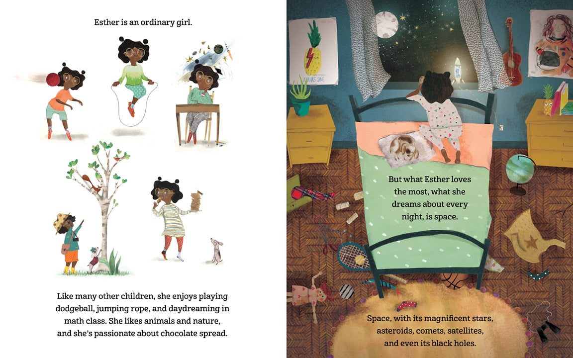 Prepare for liftoff! Award-winning illustrator Josée Bisaillon makes her authorial debut with the story of fun-loving, space-obsessed Esther, who dreams of building a spaceship to explore the galaxy. This STEM-friendly book, featuring an exceptional protagonist and a loving, diverse family, shows young readers there is no outer limit to the imagination.