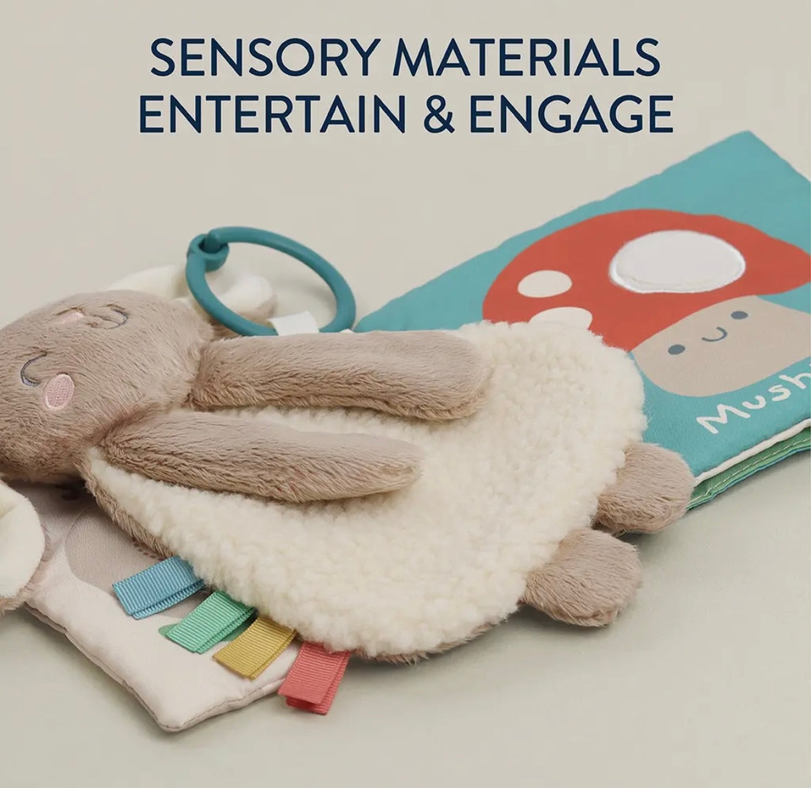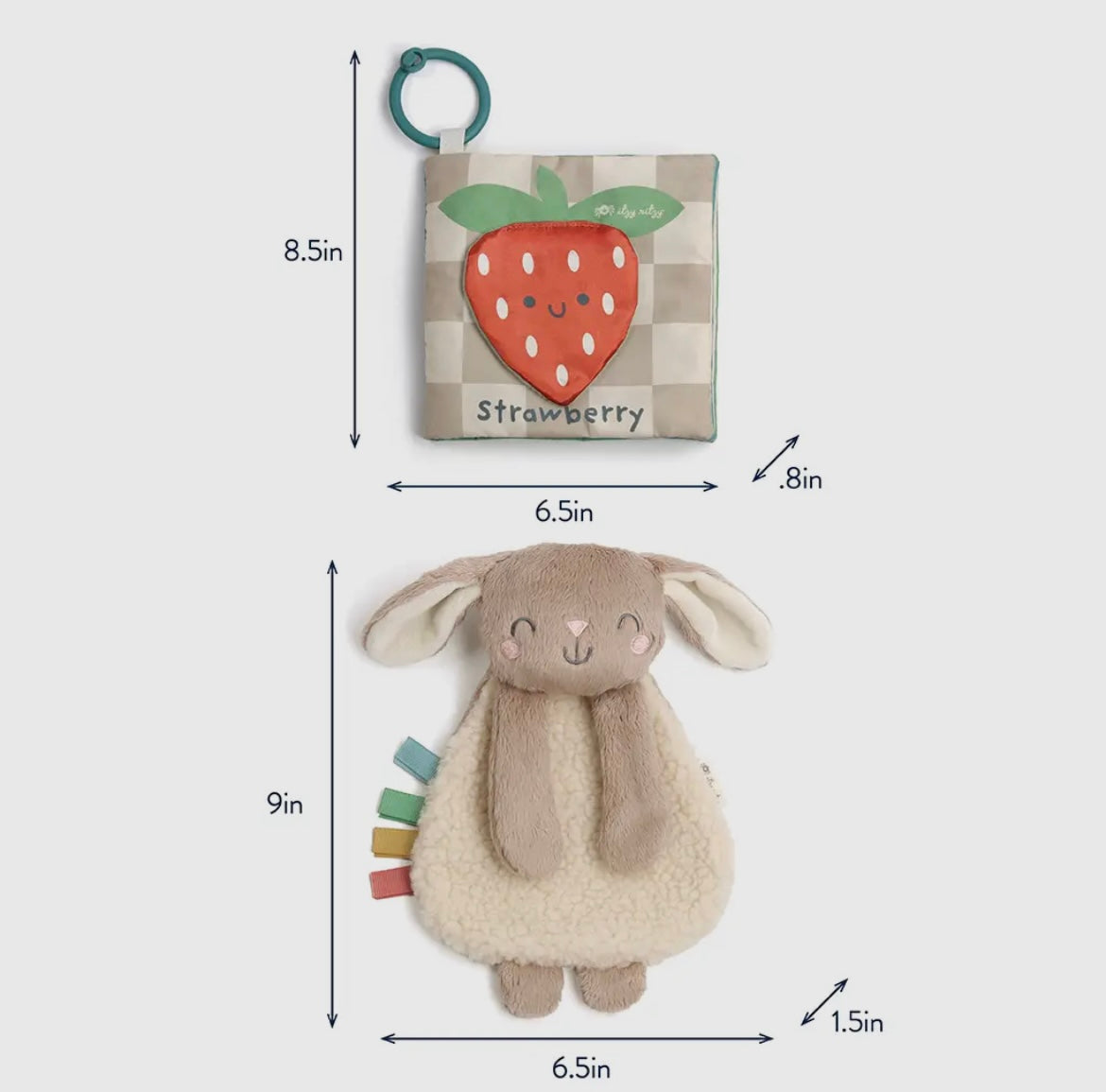 Love is in the details with our Itzy Learn & Snuggle Gift Set™! Featuring our Itzy Lovey™ and Bitzy Busy Book™, this gift set is a sensory sensation. Snuggle in close with the soft Sherpa on the Itzy Lovey™. Easily attach the Bitzy Busy Book™ to a car seat or stroller for adventures ahead! The textured pages with crinkle sounds are sure to delight!
