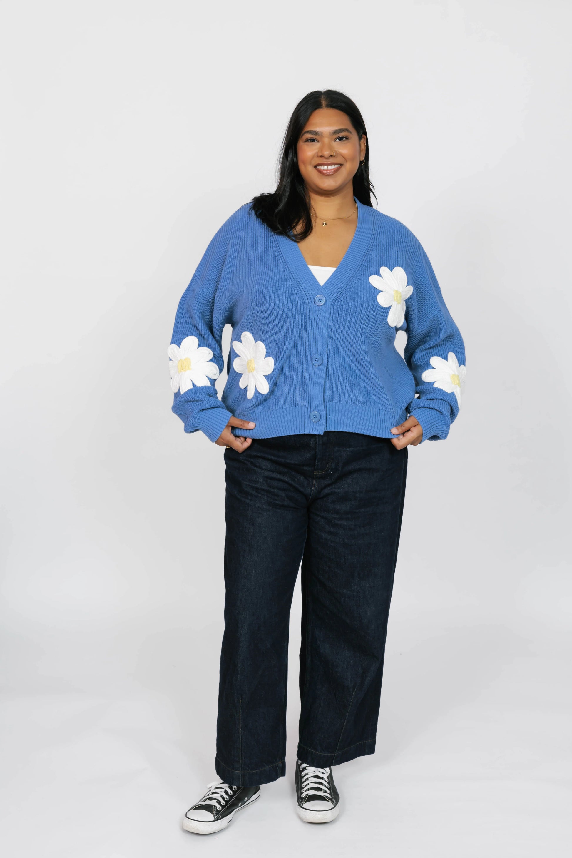 Feel fabulous in florals! Made in a soft cotton yarn with gorgeous daisy embroidery details, Nora is the statement cardigan of our dreams!