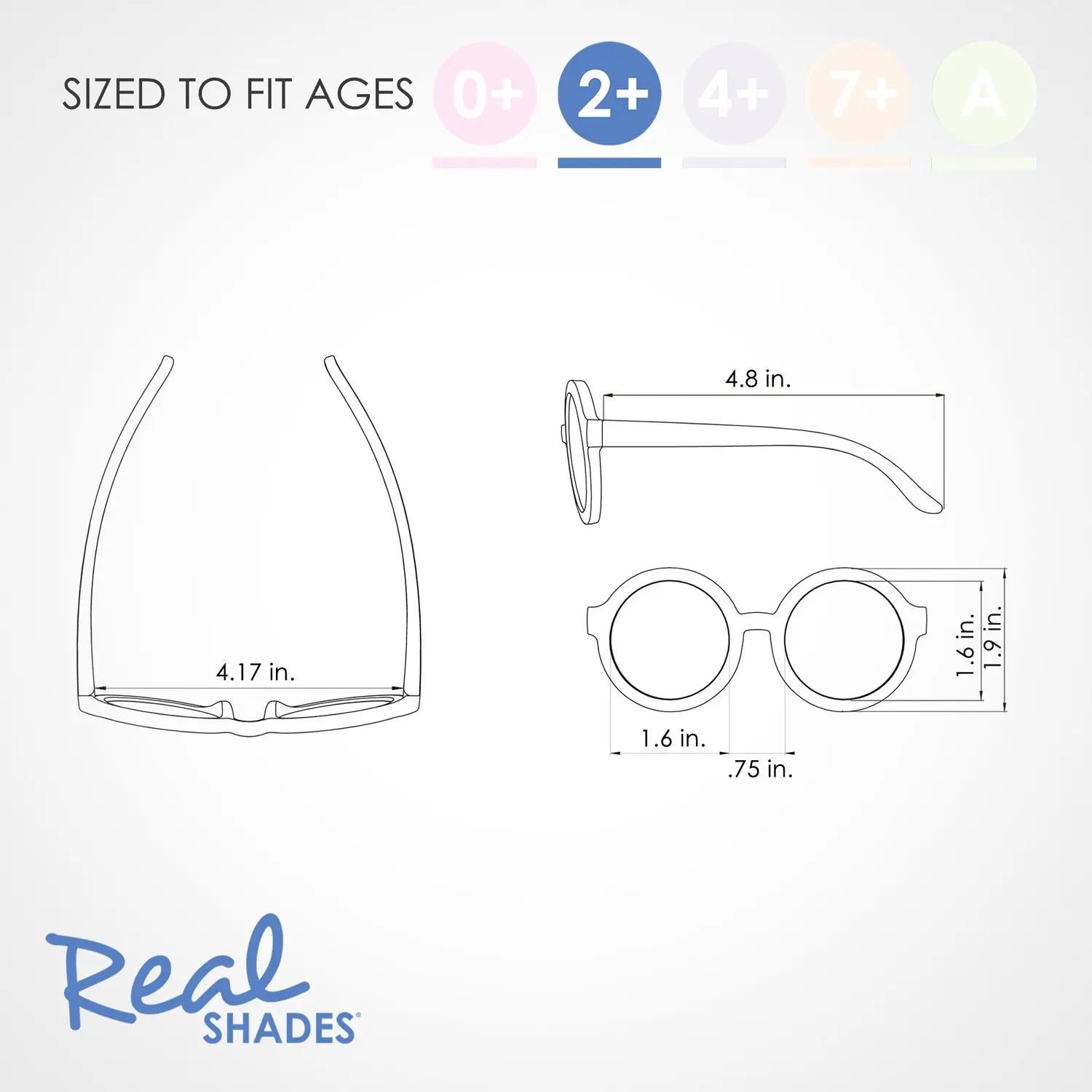 Bend 'em, flex 'em, you can't break 'em! For parents who want their toddlers to look super cool, Real Shades Vibe sunglasses are the perfect choice. These European inspired round frames provide serious sun protection and fashion forward styling at the same time. With our durable, flexible frames, kids can comfortably wear them wherever they go.
