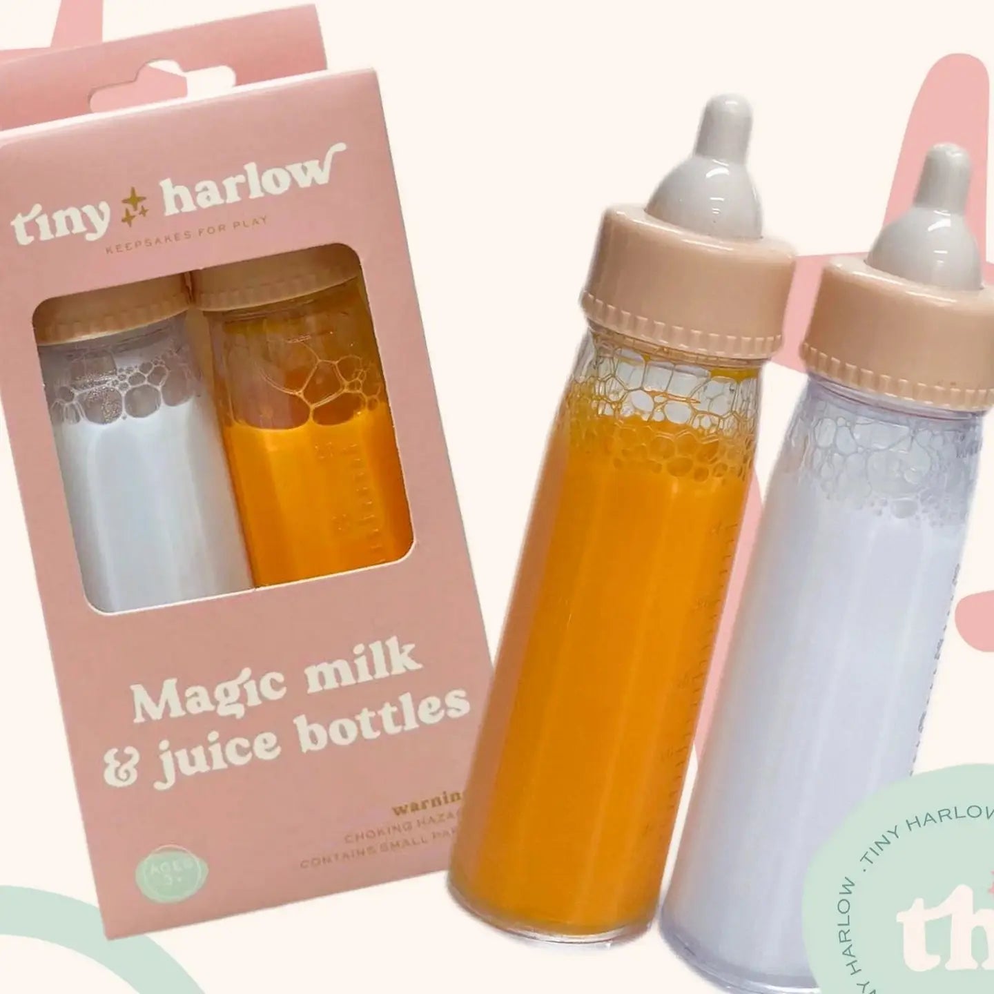 Feed your doll with these magic bottles! The liquid mysteriously disappears when you tilt the bottle. Tiny Harlow was inspired by favorite toys from the 90s!